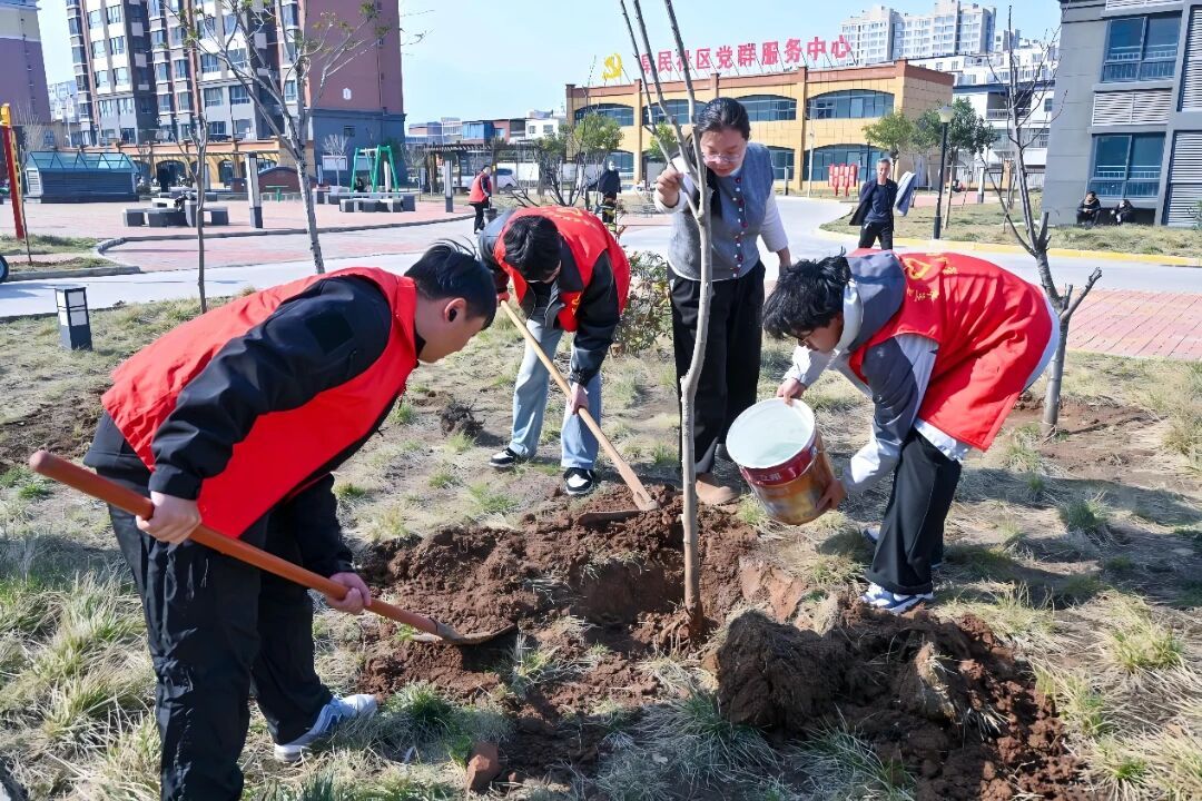 我院携手振林街道阜民社区,将植绿护绿与基层治理实践相结合,组织学生前往馨元名居小区开展共建植树活动。活动现场,学生与社区工作人员分工协作、配合默契,挥锹挖坑、扶苗培土、浇水定根,每一道工序都细致严谨,在春日里共同为社区种下新苗、增添绿意。此次社区植绿行动,不仅为居民打造了更优美的生态环境,更让学生在躬身实践中拉近了校地联系,锤炼了实践能力,以青春力量助力街道基层高效能治理,彰显了建造学生服务基层、奉献社会的责任与担当。